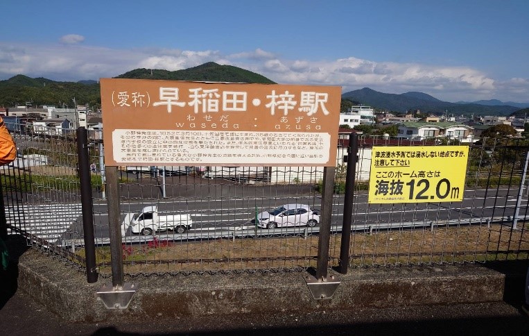 東宿毛駅では、宿毛市出身で早稲田大学の建学の中心人物となった「小野梓」氏に因み